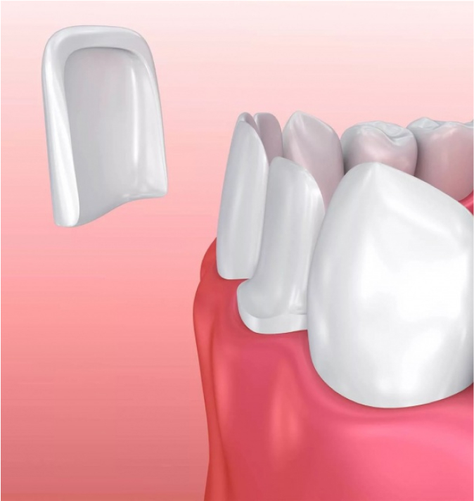 Стоматологические накладки, которые устанавливают на один, несколько или все зубы, называются винирами. Тонкие (менее 1 мм), практически невесомые пластины используют для замещения верхнего слоя эмали. Установка происходит безболезненным способом: их плотно крепят специальным цементом на зубы.
